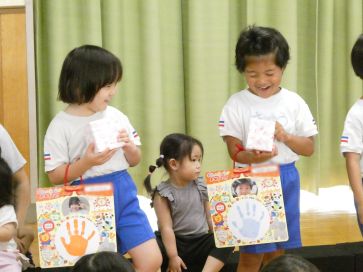 7月の誕生会を16日にしました。2歳児のお友だちがしっかりインタビューに答えていて、これからの1年の成長も楽しみになりました♪みんなプレゼントを大切に持って嬉しそうでした(^^)おめでとうございます♡