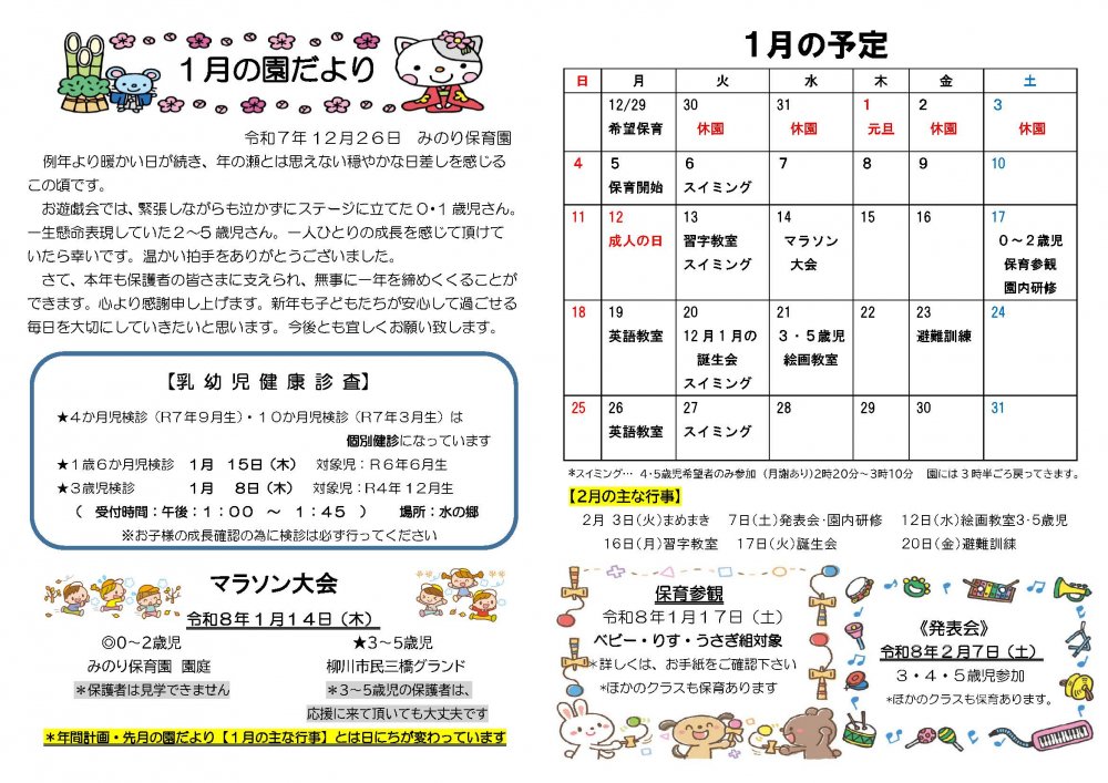 1月の園だより