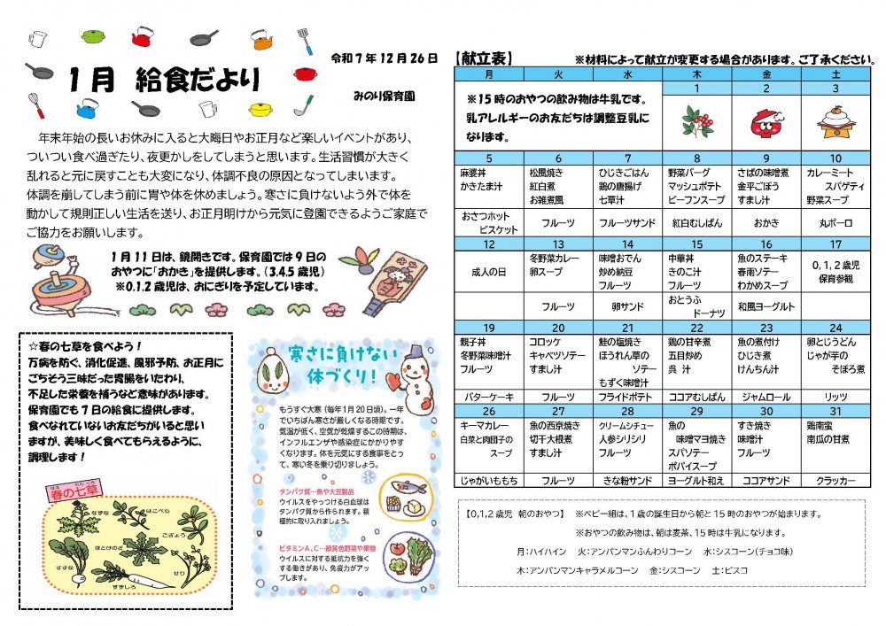 1月の給食だより
