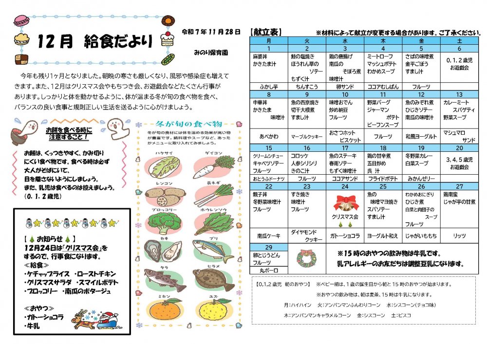 12月の給食だより